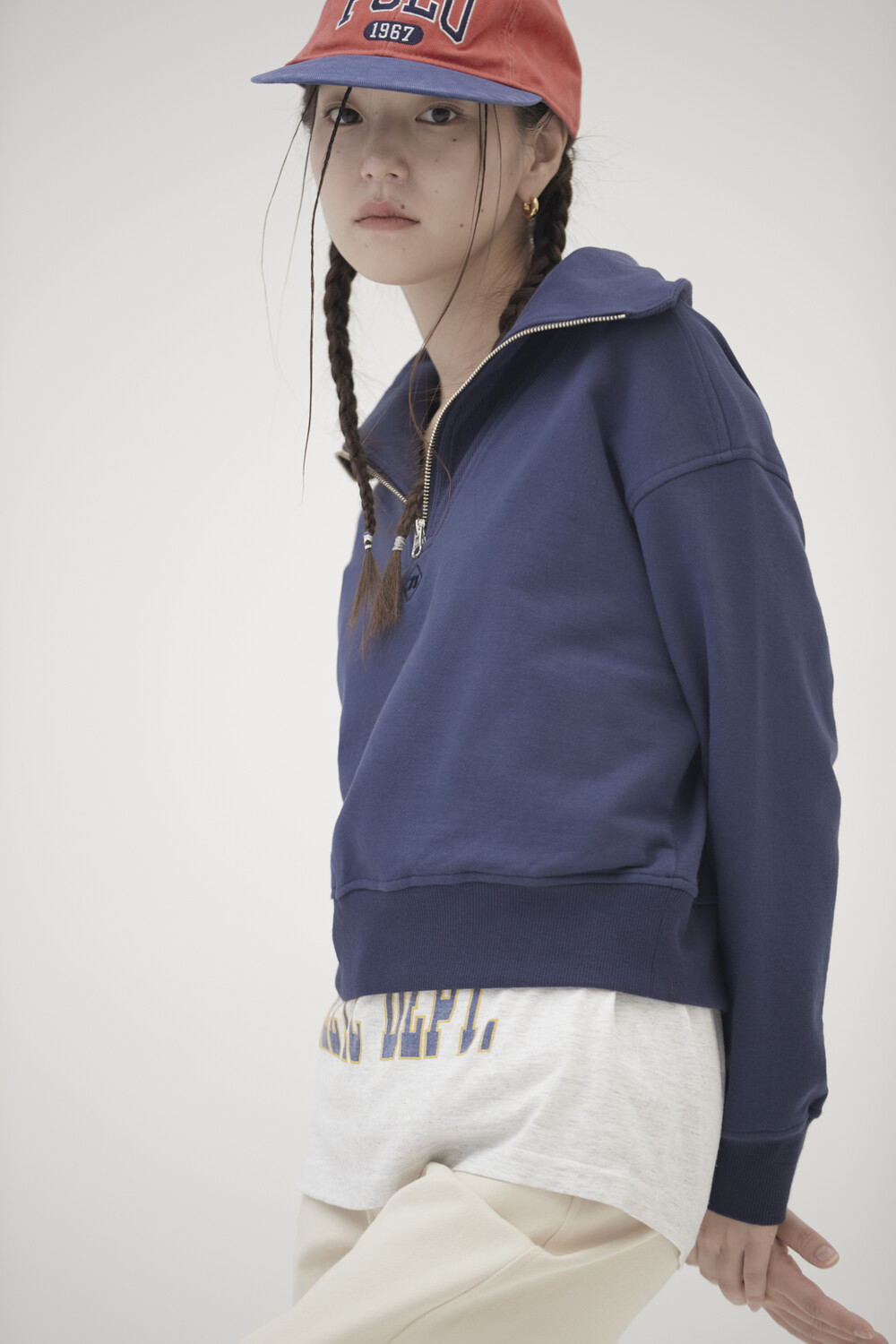 HIGH NECK CROP SWEAT SHIRTS (VINTAGE NAVY)