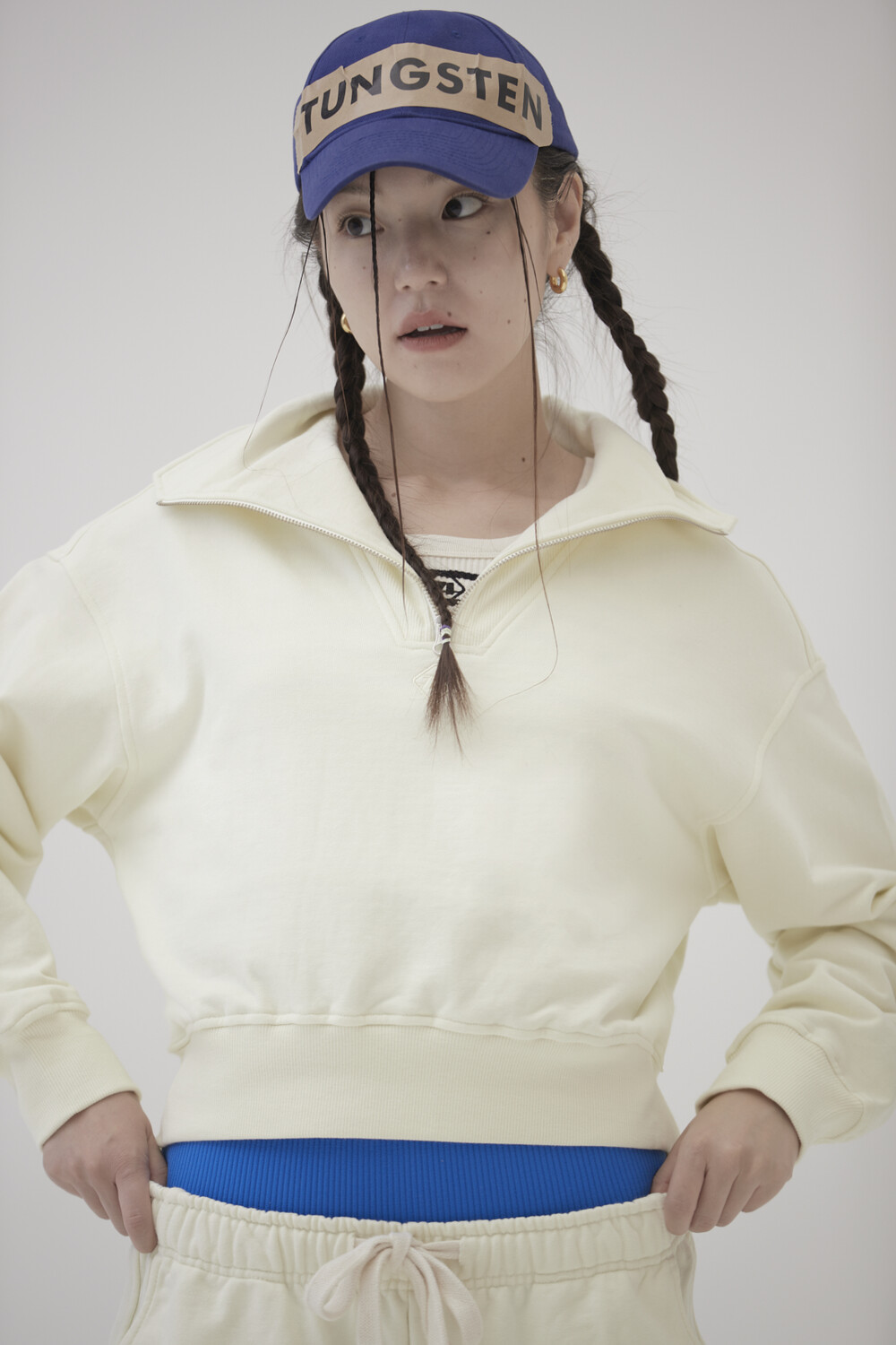 - 지퍼를 오픈했을 때와 클로즈 했을 때 다른 느낌으로 다양하게 연출 할 수 있는 매력적인 스웻셔츠입니다.